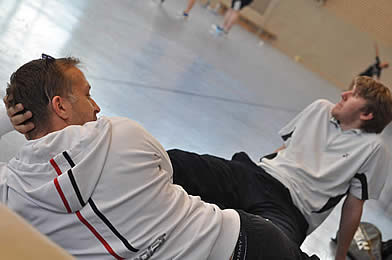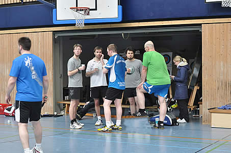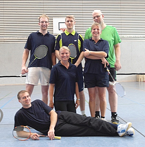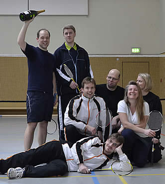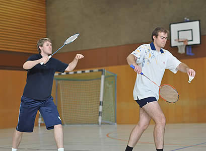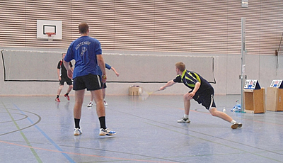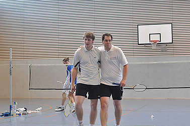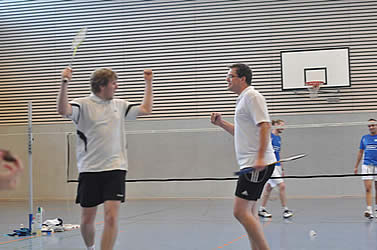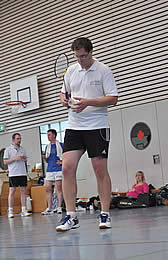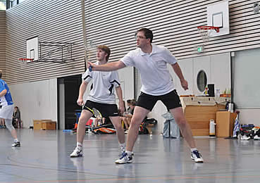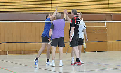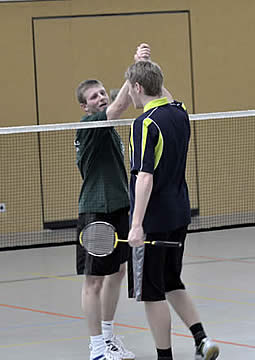das kein Selbstgänger werden würde. Erneut nahmen sich Björn und Oliver des ersten HD an und konnten hier auch gleich den ersten Satz für sich entscheiden. Allerdings hatten sich die Gegner nun auf die beiden eingestellt, wodurch es ihnen gelang, den zweiten Satz ihrerseits zu gewinnen. Der dritte Satz brachte leider nicht mehr die nötige Puste mit sich, so dass am Schluss ein 14:21 / 21:15 und 21:11 für Achim heraus kam. Und während Hauke und Torsten im zweiten HD ebenfalls über drei Sätze gingen (und am Ende auch einen Sieg mit 21:14 /14:21 und 21:19 einspielten), brachte das DD seinen Punkt doch deutlich und zügig in zwei Sätzen mit 21:7 und 21:15 heim. Allerdings musste doch eingeräumt werden, dass im zweiten Satz unnötig viele Punkte abgegeben wurden. Somit stand es nach den Doppeln 2:1 für uns.