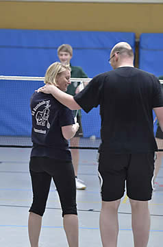 In der Begegnung gegen Drochtersen konnten immerhin schon mal mit dem ersten Herrendoppel (21:17 und 21:12) und (man merke auf) erneut mit dem Damendoppel (21:17 und 21:13) zwei wertvolle Punkte eingefahren werden. Bei den Herreneinzeln konnte einzig Torsten Hitzwebel in einem mehr als knappen Spiel noch einen Punkt holen (18:21 / 21:19 und 21:19). Das sollten dann auch die einzigen drei Punkte bleiben. Silke Greiser (bei der sich nun immer mehr der grippale Infekt bemerkbar machte) konnte im Einzel nicht ihre Stärken ausspielen und auch Florian Steup musste sich in einem Drei-Satz-Spiel geschlagen geben. Rose-Mary Haller und Stefan Riccius gaben zwar alles in ihrem Mixed-Doppel, aber schon während des Spiels wunderte man sich auf der Bank dass da nicht mehr kam. Im nachhinein stellte sich später heraus; kein Wunder - Stefan hatte sich in seinem vorherigen Spiel einen Bruch zugezogen. Damit lässt sich natürlich nicht vernüftig laufen.