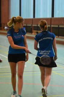 Als nächstes stand Wallhöfen gegen Buxtehude/Immenbeck auf dem Feld. Die Begegnungen der Doppel fingen an. Das 1. HD wieder besetzt von Stephan Schumann und Björn Sahma spielten gegen Finn Lucyga und Florian Zappe ein 3-Satz-Spiel. Den 1. Satz gewann das HD von Buxtehude mit 21:17. Wallhöfen rang sich in den beiden folgenden Sätzen dazu durch, zu gewinnen und Buxtehude verlor den 2. Satz zu 16 und den 3. Satz leider zu 18. Das 2. HD wieder besetzt von Björn Grundke und Stefan Riccius gegen Robert Windt und Niko Lütjen. Björn und Stefan verloren den 1. Satz zu 16. Im 2. Satz haben Björn und Stefan den Spieß gedreht und spielten bis in die Verlängerung für einen Sieg des Satzes zu 20. Leider lag der Erfolg dann im 3. Satz doch bei Wallhöfen mit einem Punktestand 16:21 für Robert und Niko. Das DD Amelie Hagemeister und Nina Tietz standen wieder einmal vor der Herausforderung der Wallhöfener Damen, Deike Monsees und Dörthe Havemeyer. Leider verloren Amelie und Nina zu 11 und 6.
