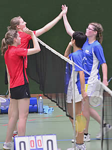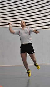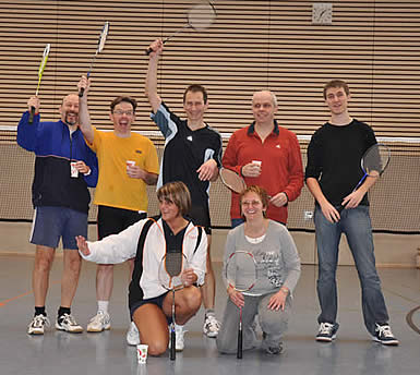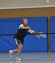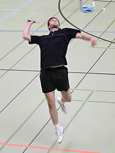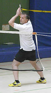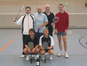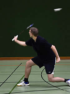 Die anderen Herren-Einzel gingen leider an die Gegner - das sollten aber auch die einzigen abgegebenen Punkte werden! Björn Warmuth brach leider im dritten Satz weg, so dass er sich mit einem 21:19 / 11:21 und 11:21 begnügen musste. Jens Koch hatte sich schon vor dem Punktspiel auf die Begegnung mit seinem Einzelgegner gefreut, hatten die beiden sich doch schon in der vorherigen Saison ausgiebig behakt. An diesem Tag sah die Sache auch schon deutlich enger aus. Mit knappen 19:21 und 19:21 musste Jens Zähne knirschend noch einmal das Feld räumen. Aber beim nächsten Mal! Späterer Kommentar von Jens: "Eigentlich hatte es mir richtig Spaß gemacht ihn laufen zu lassen - irgent wann hätte er ja mal schlapp machen müssen. Dummer Weise hat er das aber nicht - dafür war ich es dann. Der läuft mir einfach zu viel!"