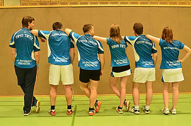 Das hochmotivierte Sextette feierte am Sonntag den 04.09.11 mit einem 7:1 Sieg über den TSV Wellen ihre ersten beiden Punkte. Trotz leicht angeschlagener Mannschaft durch den verschnupften Florian und "einbeinigen" Steffen, einer Hallentemperatur von gefühlten 70°C bei 100% Luftfeuchtigkeit und der neuen Doppel Konstellationen Steffen&Florian, Timo&Stefan, Nina&Stefan, überraschte die dritte durch Entschlossenheit und Kampfgeist.
