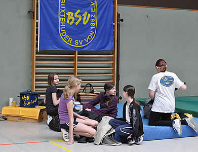 Solch ein Turnier erfordert viele gute "Geister" und daher sei nicht nur den Trainern und Eltern, die ihre Teilnehmer hierher anch Buxtehude gebracht hatten, ein großes Danke schön im Namen aller gesagt, sondern unser besonderer Dank gilt auch all' den vielen Helfern des BSV, die mit Kuchen und Salaten für eine tolle Cafeteria gesorgt hatten ("dumm" nur, dass die Sachen offensichtlich so gut waren, dass schon am späten Nachmittag alles sehr ausgesucht war und unsere Cafeteria-Helfer noch nachkaufen mussten), beim Auf- und Abbau geholfen hatten, als "Zähler" bei den Jüngsten zur Verfügung standen oder aber den gesamten Tag am Turnierleitungstisch saßen (bis ihnen graue Haare kamen? - schmunzel). Sie alle haben ihre Freizeit für unsere jungen Teilnehmer her gegeben