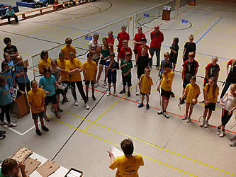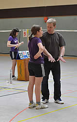 Bei den U11ern spielten die Mädchen und Jungen gemeinsam in einer Gruppe jede gegen jeden. Mit ihrem Einsatz standen sie den "Großen" in nichts nach. Da waren viele spannende Ballwechsel zu sehen und dank der lieben Hilfe von Trainern und Betreuern brauchte hier auch keiner seine Punkte selber mitzählen, sondern konnten anhand der von den Erwachsenen bedienten Klapptafeln sehen wie es gerade stand.