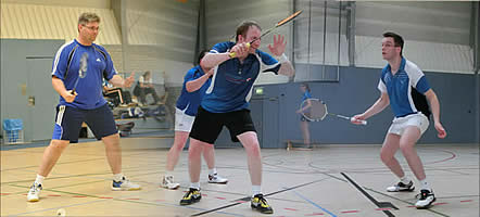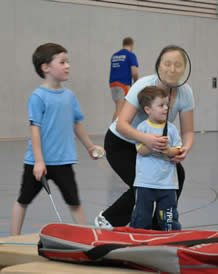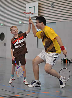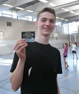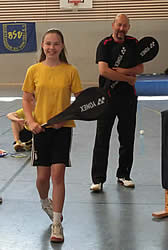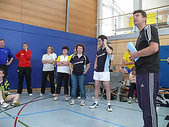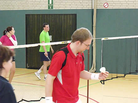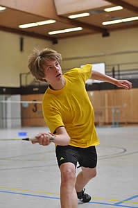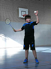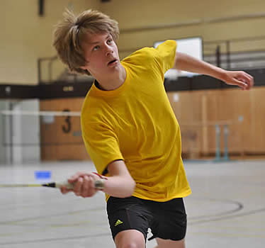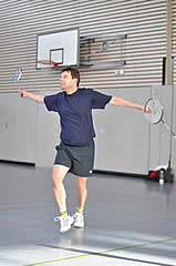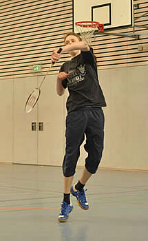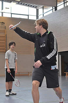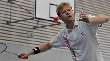 Jugendtrainer in der BSV-Badminton-Abteilung arbeitet, konnte in einem hart umkämpften Spiel sein Einzel in zwei Sätzen mit 21:17