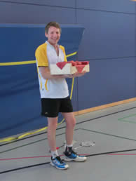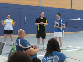 so war es eine Erleichterung, dass Kristian Binz das dritte Herren-Einzel mit 22:20 und 21:14 und damit den benötigten vierten Punkt nach