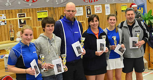 mit ihrer Doppelpartnerin Anja Bogs ins Mixed. Die Taktik ging auf. Außerdem zeigten sich die Herren von ihrer besten Seite und