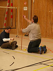 Richtig ins Eingemachte ging es für uns Ausrichter bereits am Freitagabend. Während die ersten Teilnehmer aus Süddeutschland vom ASV Möhrendorf sich schon mal auf dem Buxtehuder Weihnachtsmarkt vergnügten, waren wir in der Halle fleißig am Felder kleben, sowie Material und Bäume heran schaffen.
