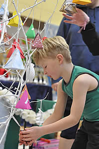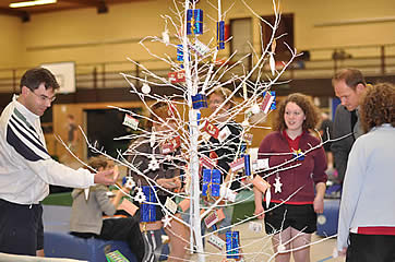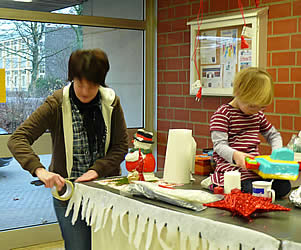 Wie schon im Jahr zuvor konnten auch dieses Mal wieder kleine Willkommensgeschenke gebastelt werden und so war das kleine, weiße Bäumchen wieder Anziehungspunkt für jeden. Besonders die Kinder waren mit besonderem Eifer dabei, die Päckchen für ihre Eltern zu suchen: