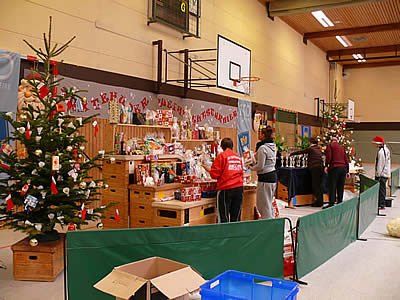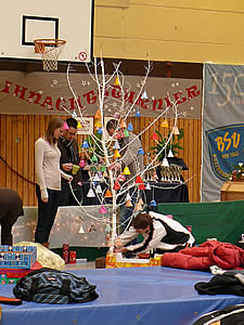 Hilfe von vielen, vielen helfenden Händen die Halle wieder einmal richtig weihnachtlich hergerichtet werden.