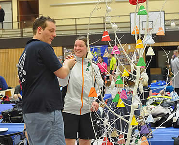 Und dass wir sogar mit unseren Vorbereitungen fertig waren als die ersten Spieler in der weihnachtlich geschmückten Halle eintrafen