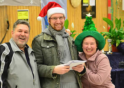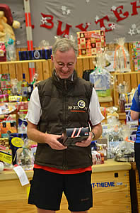 Nun freuten sich alle auf die Tombola-Verlosung, bei der zumindest auch in diesem Jahr wieder für jeden ein Geschenk mit dabei war. Um ein wenig für Abwechslung zu sorgen, ging es dieses Mal nicht nach Reihenfolge der Nummern, sondern Holger und ich zogen (wie bei der Lotterie) die Nummern noch einmal aus unserem Hut. So blieb die Spannung bis zum Schluss erhalten.